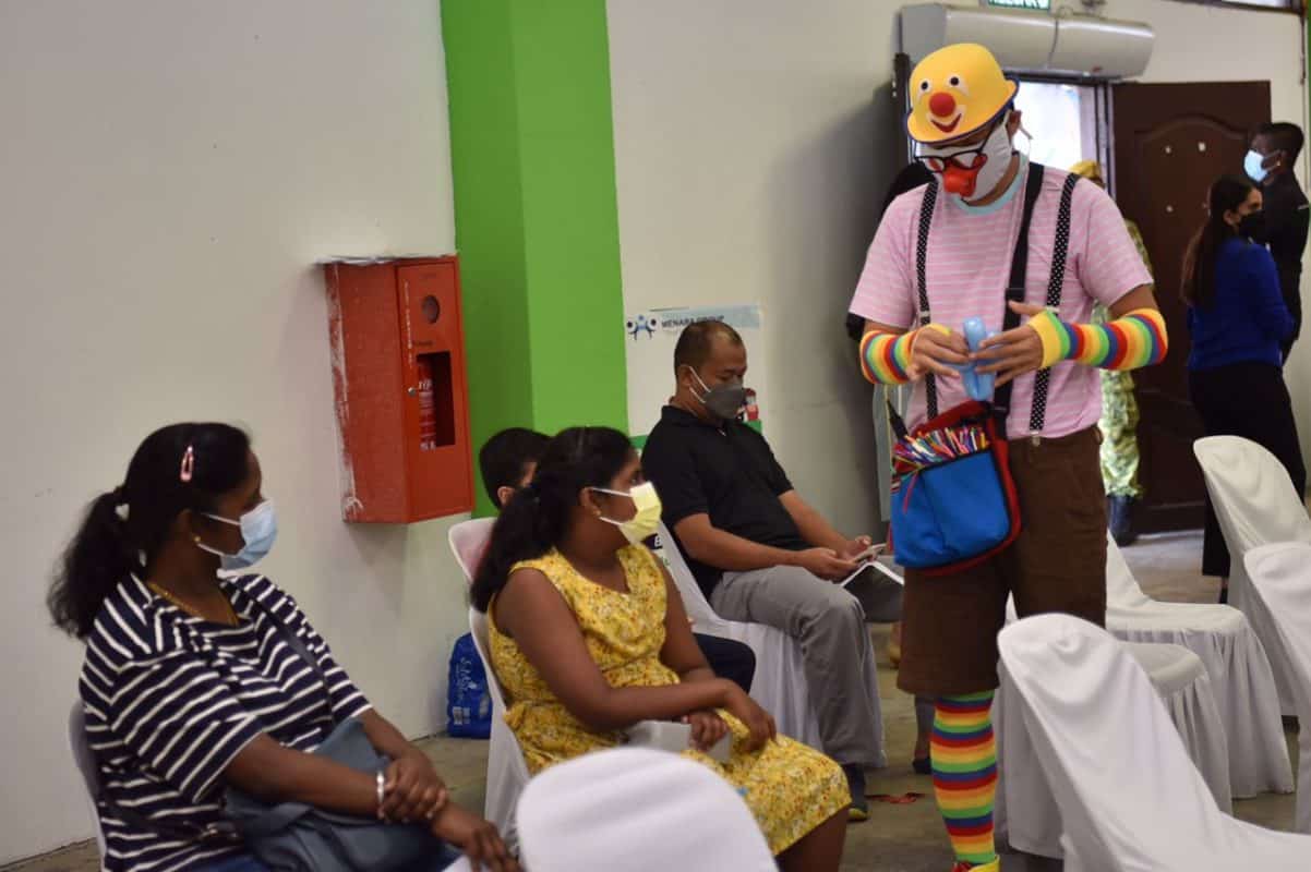 The children were also entertained by a balloonist clown while waiting for their turn to be inoculated.