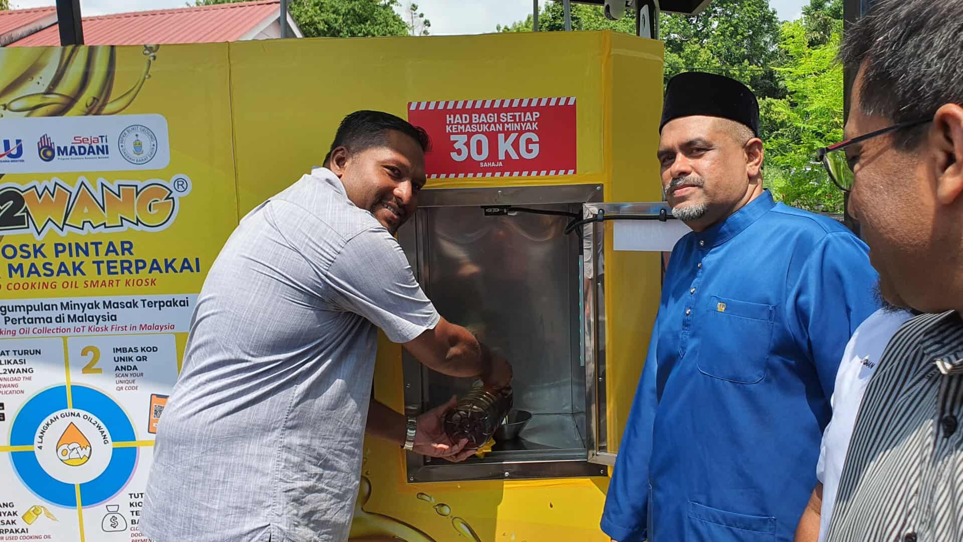 THE first Oil2Wang smart kiosk in Penang was launched at Bukit Gedung in Bayan Lepas today, allowing households to recycle used cooking oil (UCO) and receive instant payments.