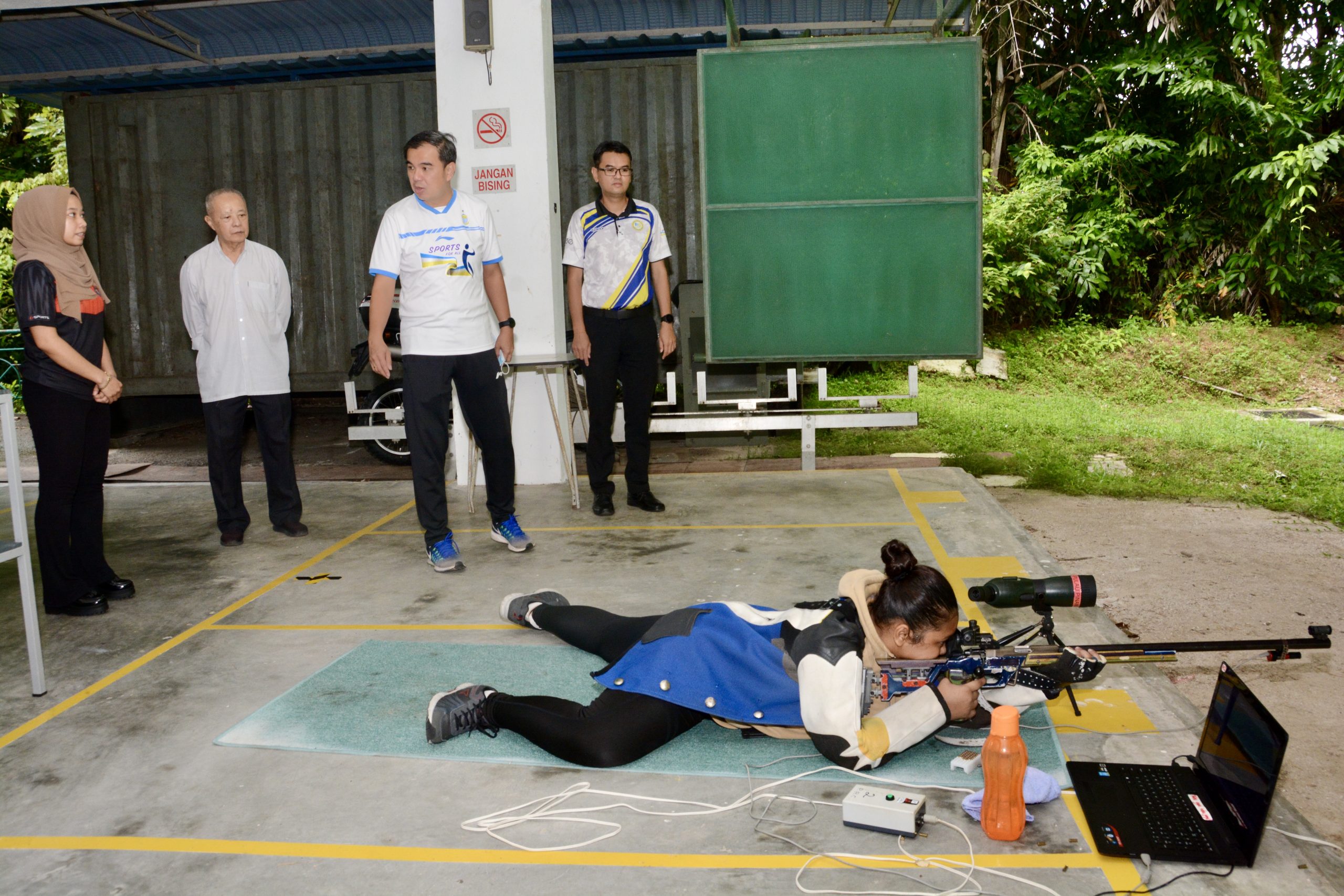 One of the trainees who attended training today was Siti Zulaika Haira Rosman, a Form Three student of SMK Hamid Khan. She is aiming to qualify for a spot in the 50m air rifle prone event.