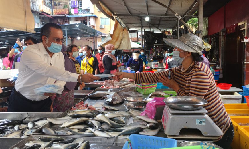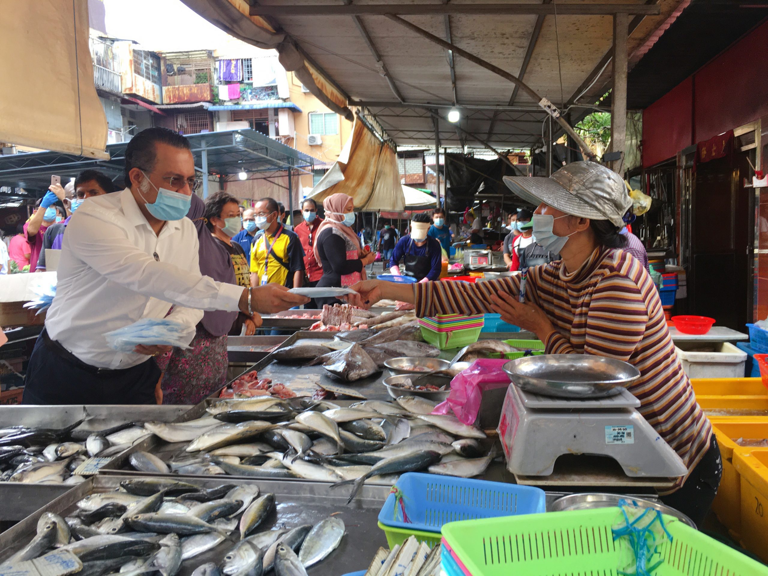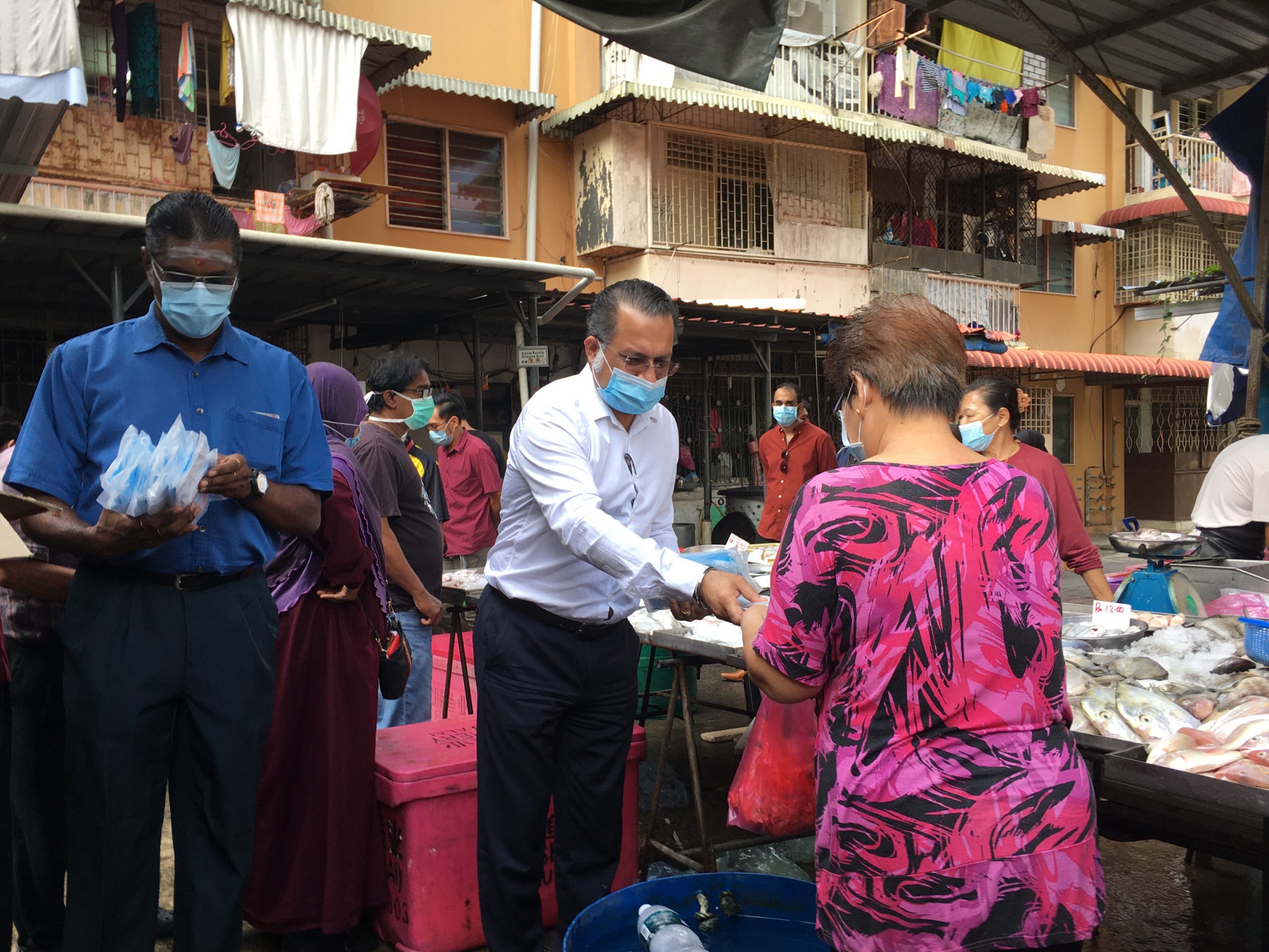 Before the press conference, Jagdeep visited the Taman Free School market to distribute face masks to the traders, hawkers and market-goers.