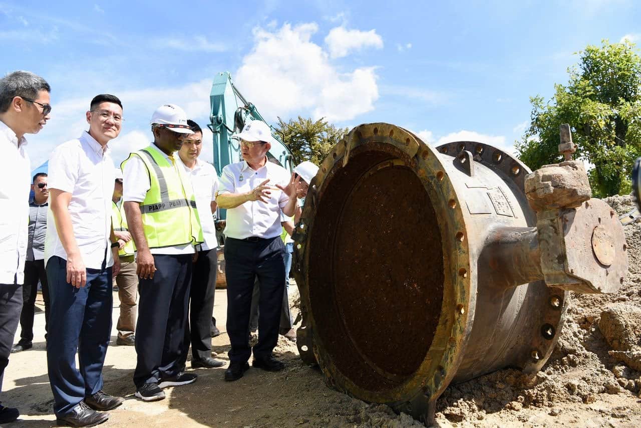 SUNGAI DUA – Tepat jam 3 petang tadi, Ketua Menteri, Y.A.B. Tuan Chow Kon Yeow mengumumkan bahawa kerja-kerja penggantian injap pertama bersaiz 1,200 milimeter (mm) di dalam perkarangan Loji Rawatan Air (LRA) Perbadanan Bekalan Air Pulau Pinang (PBAPP) dekat Sungai Dua telah siap dijalankan.