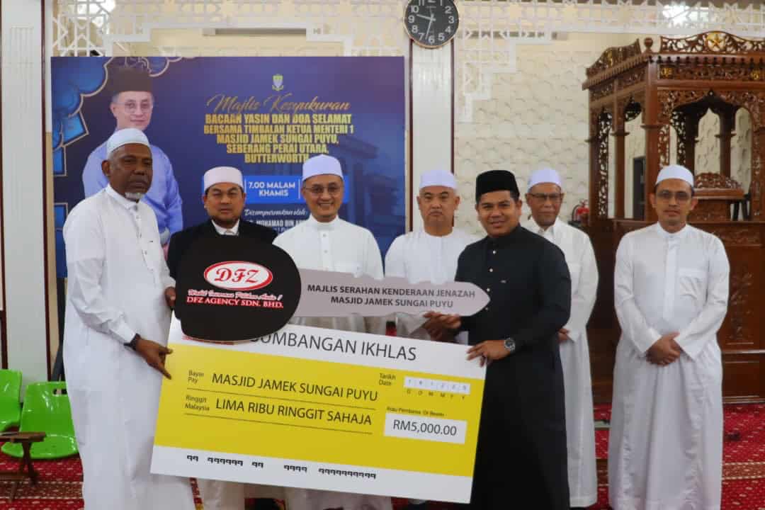 Dalam perkembangan lain, beliau turut memuji usaha Pengasas dan Ketua Pegawai Eksekutif DFZ Agency, Abd. Hafiz Abd. Majid atas sumbangan sebuah van jenazah baharu yang siap diubah suai dengan kos kira-kira RM100,000 bagi memudahkan urusan kariah Masjid Jamek Sungai Puyu.