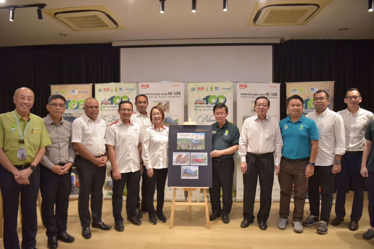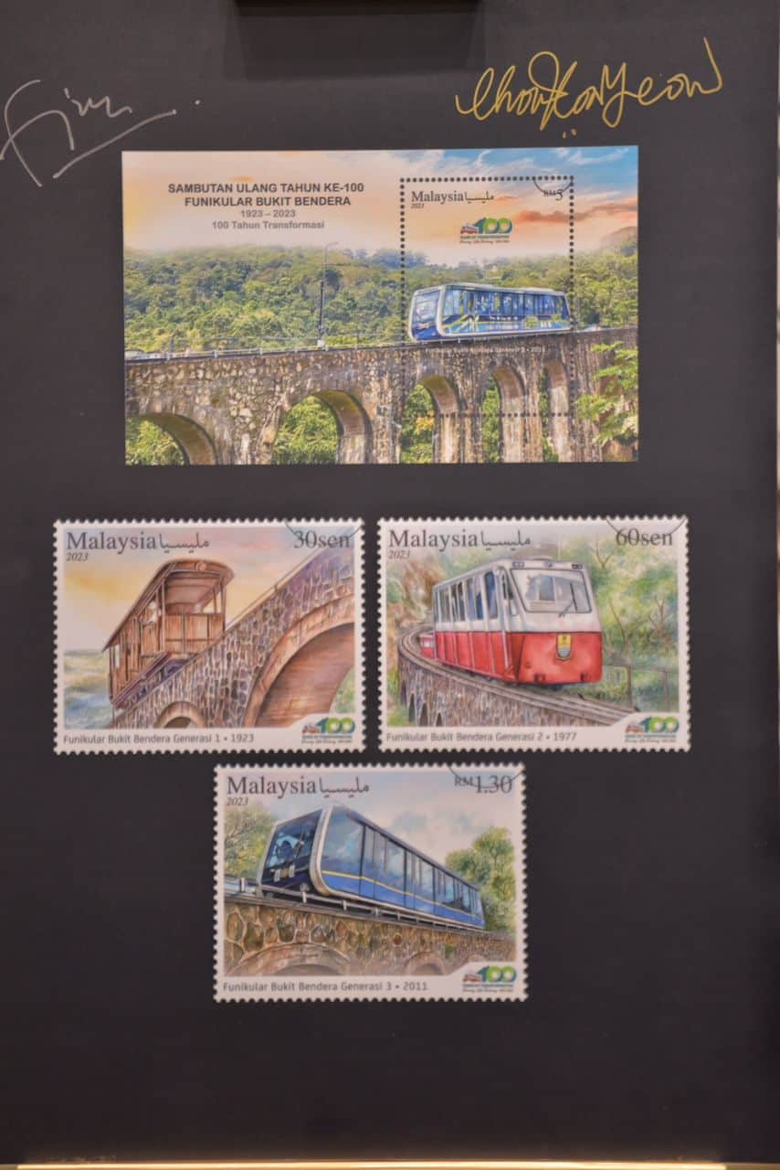 GEORGE TOWN – Kerajaan Perpaduan Negeri melalui agensinya Perbadanan Bukit Bendera Pulau Pinang (PHC) dengan kerjasama Pos Malaysia Berhad (Pos Malaysia) hari ini melancarkan Setem Kenang-Kenangan serta Sampul Surat Hari Pertama sempena Sambutan Ulang Tahun Ke-100 Funikular Bukit Bendera di sini.