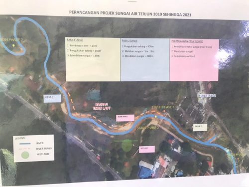 “Manakala, skop projek pada fasa pertama tahun lalu merangkumi pembinaan weir di Sungai Air Terjun, pengukuhan tebing, pelebaran dan pendalaman sungai. Didapati selepas pelaksanaan kerja-kerja ini, keamatan banjir di kawasan terbabit telah berkurangan,” jelas beliau sambil menyifatkan tuduhan yang dilemparkan pihak berkaitan sebagai tidak berasas.