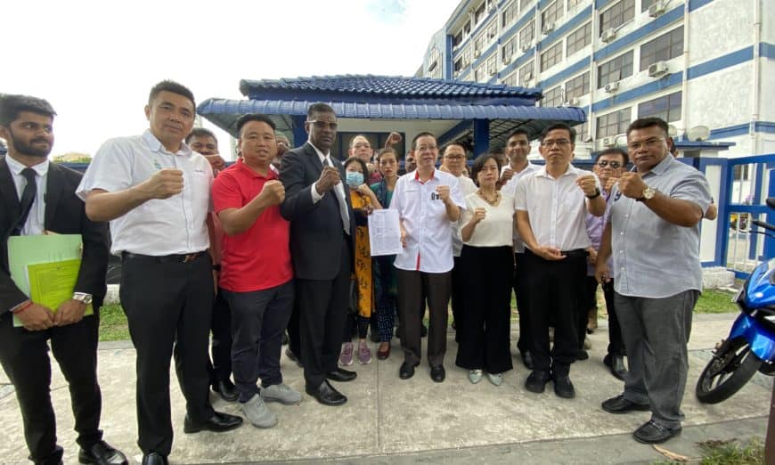 Guan Eng bersama-sama Ahli Parlimen Jelutong, R.S.N. Rayer hadir ke ibu pejabat polis berkaitan pada pagi ini bagi membuat laporan berikutan kenyataan yang dikeluarkan oleh pemimpin berkenaan beberapa hari lepas.