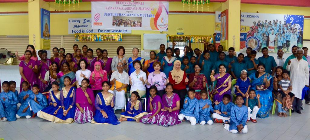 In conjunction with the Deepavali celebration which falls on Nov 6, Pertubuhan Wanita Mutiara organised a High-Tea “Riang Ria Diwali” session for the kids from Ramakrishna Ashram at Scotland Road today which had the honourable Madam Tan Lean Kee, the wife of Chief Minister Chow Kon Yeow, as the Guest of Honour.