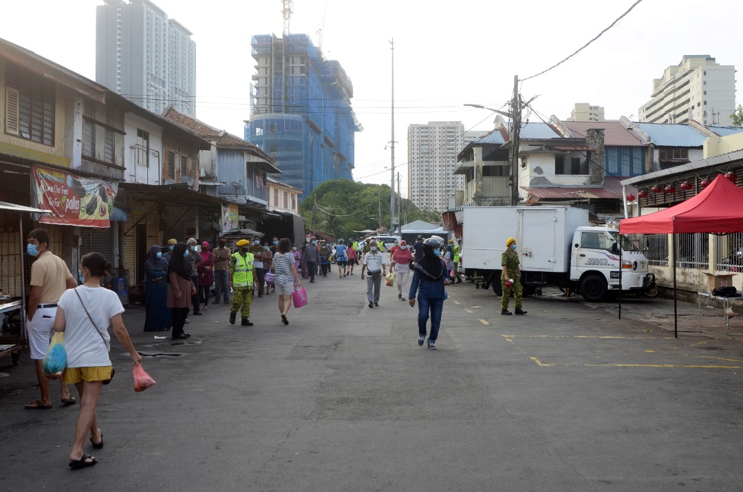 As a measure to curb the Covid-19 pandemic, barricades were set up beside the Air Itam police station and the Jalan Kampung Pisang-Jalan Paya Terubong junction to prevent overcrowding at the Air Itam market area.