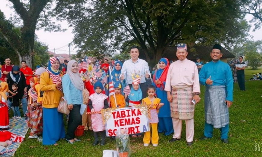 JAWI – Sambutan Hari Kebangsaan Ke-62 anjuran Jabatan Kemajuan Masyarakat (Kemas) Parlimen Nibong Tebal meriah apabila lebih 400 murid taman bimbingan kanak-kanak (tabika) dan taman asuhan kanak-kanak (taska) berkaitan sertai program perarakan mini baru-baru ini.