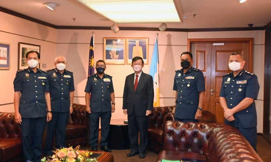 GEORGE TOWN – Ketua Menteri, Y.A.B. Tuan Chow Kon Yeow menerima kunjungan hormat Pengarah Jabatan Kastam Diraja Malaysia (Kastam) Negeri Pulau Pinang, Abdul Halim Ramli dekat pejabat beliau di Komtar sebentar tadi.