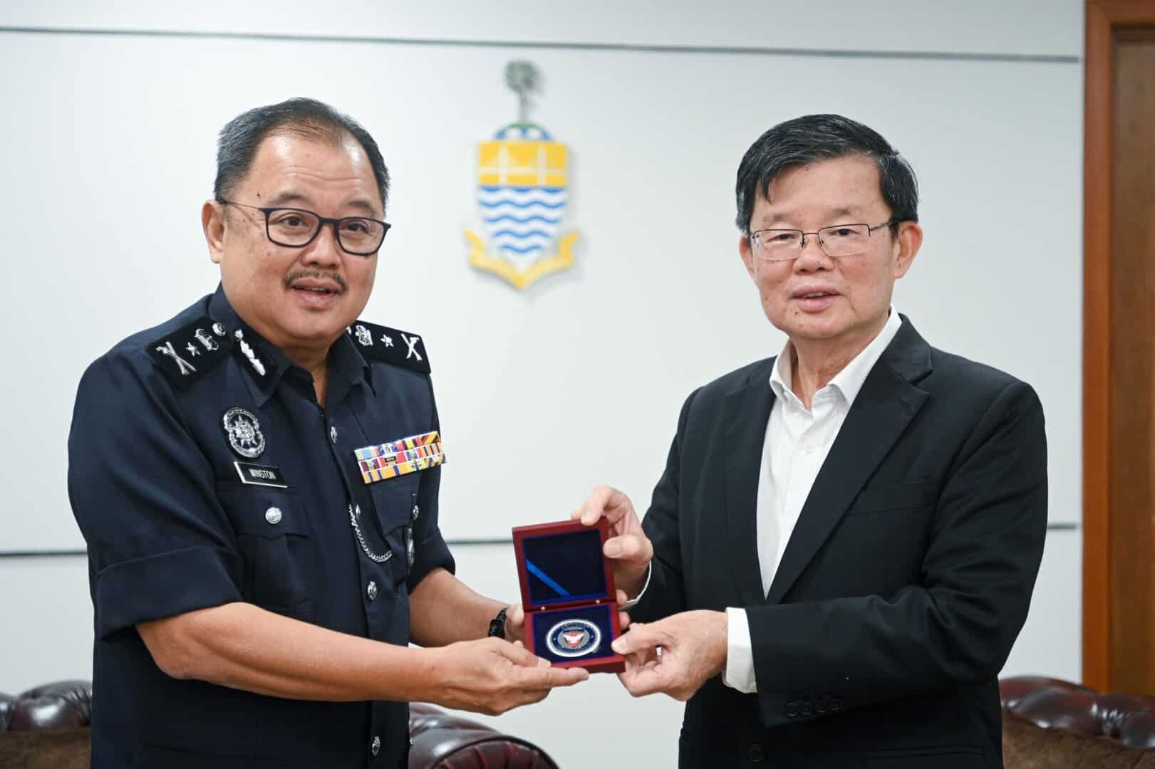 PENANG Special Branch chief, senior assistant Comm Datuk Winston Tan Thye Wah, paid a courtesy visit to Chief Minister Chow Kon Yeow in Komtar this afternoon to formally announce his upcoming retirement from the police force.