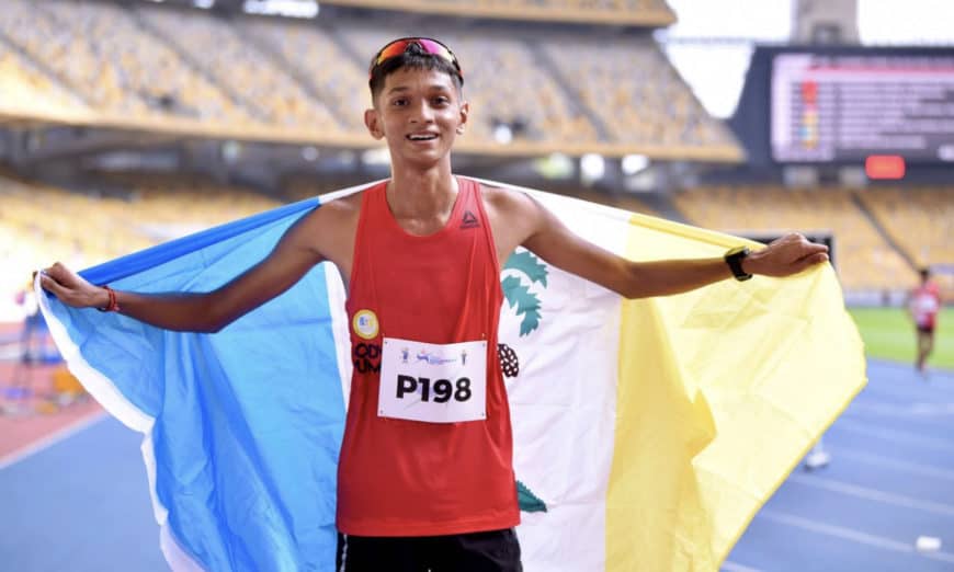 PUCHONG, SELANGOR – Atlet lumba jalan kaki lelaki 10,000 meter (m) Pulau Pinang, Sriven Tan memenangi pingat emas dengan catatan masa 48 minit 14 saat dalam acara yang berlangsung di Stadium Nasional Bukit Jalil pada pagi tadi.