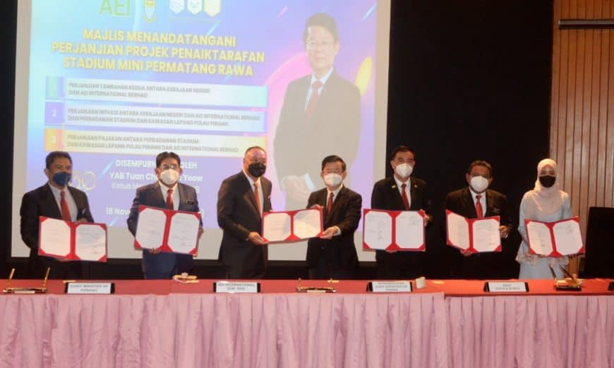 GEORGE TOWN – Kerajaan Negeri Pulau Pinang hari ini menandatangani tiga perjanjian berkaitan pemilikan dan pengurusan Stadium Mini Permatang Rawa yang telah siap dinaik taraf.