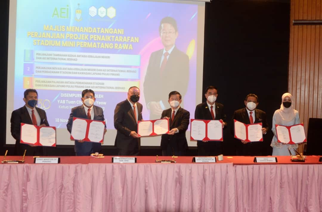 “Seterusnya, Perbadanan Stadium dan Kawasan Lapang Pulau Pinang dibenarkan memajak tanah kepada syarikat AEI bagi tujuan pengoperasian Stadium Mini Permatang Rawa,” katanya pada Majlis Menandatangani Perjanjian Projek Penaiktarafan Stadium Mini Permatang Rawa dekat Komtar di sini sebentar tadi.