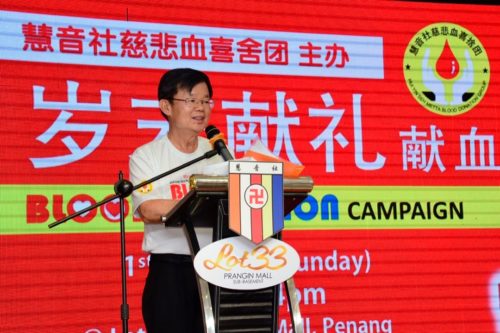 Chief Minister Chow Kon Yeow, who was the guest of honour at the event, said he appreciated the noble effort by Hui Yin Seh Metta Blood Donation Group, alongside Penang Hospital, Island Hospital and Lam Wah Ee Hospital.