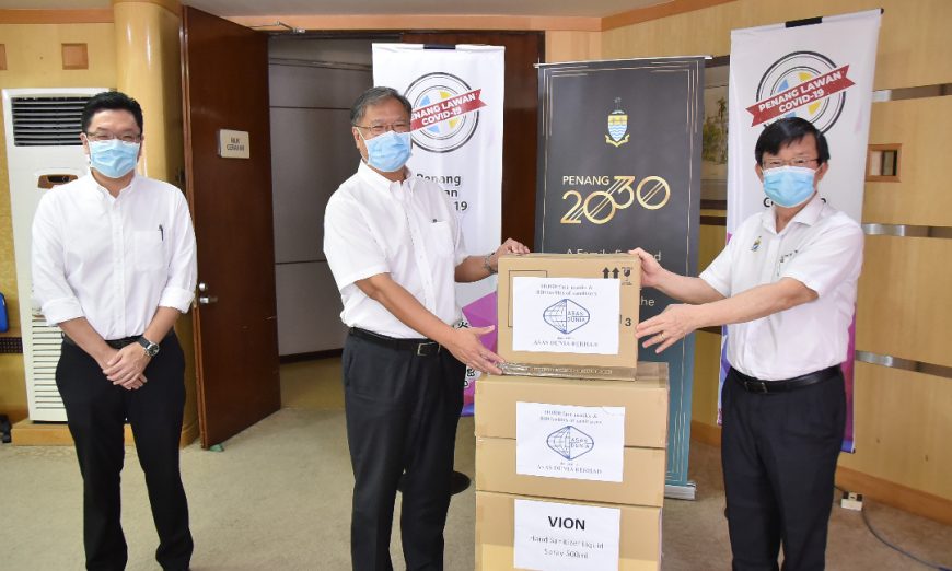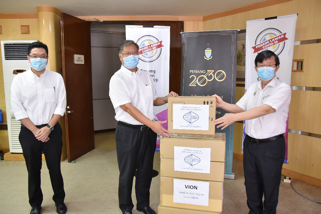 Sumbangan disampaikan oleh Pengarah Urusan Asas Dunia Berhad, Datuk Jerry Chan kepada Ketua Menteri, Y.A.B. Tuan Chow Kon Yeow yang mewakili Kerajaan Negeri Pulau Pinang di Komtar.