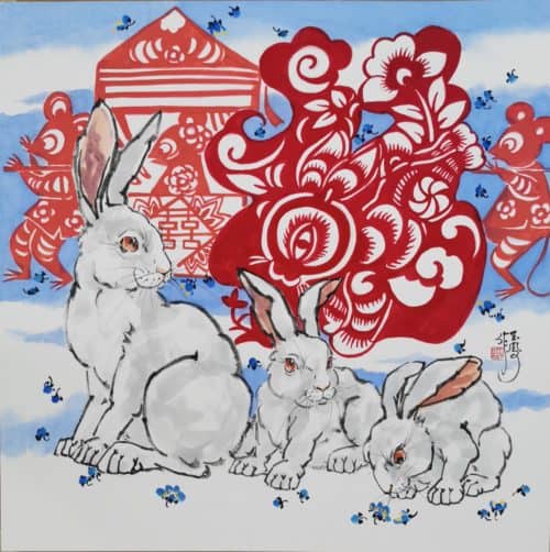 Her artwork, as translated from Chinese to English, is called “100 Rabbits’ Blessings of Prosperity”.