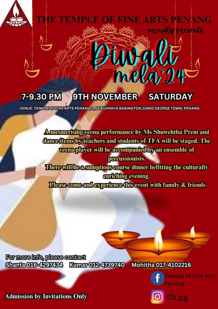 THE Temple of Fine Arts Penang is set to host the Deepavali Mela, an event celebrating cultural heritage through vibrant performances and community gatherings.