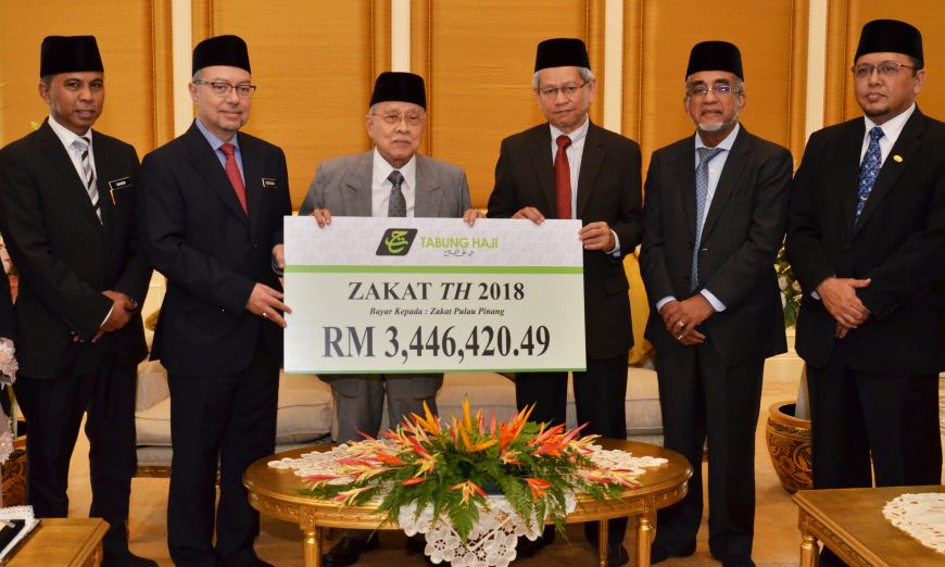 GEORGE TOWN – Lembaga Tabung Haji (TH) hari ini menyerahkan zakat perniagaan berjumlah RM3,446,420.49 bagi tahun kewangan terakhir 2018 kepada Majlis Agama Islam Negeri Pulau Pinang (MAINPP) melalui Zakat Pulau Pinang (ZPP).