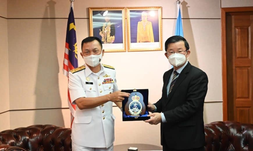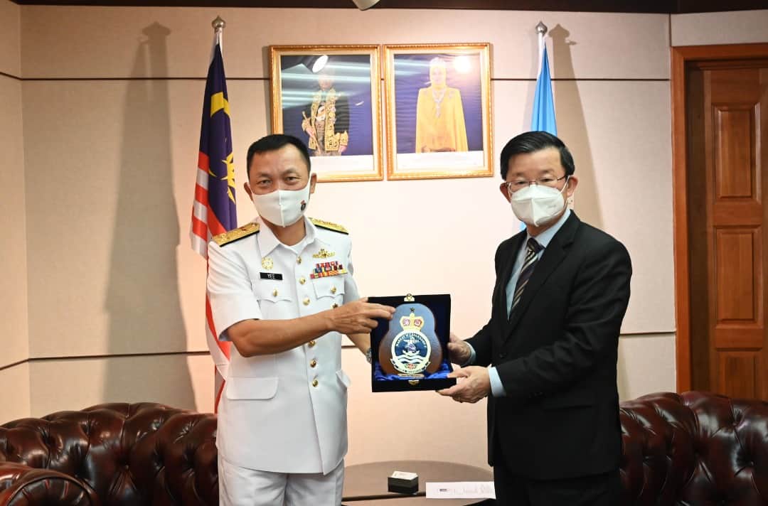 GEORGE TOWN – Ketua Menteri, Y.A.B. Tuan Chow Kon Yeow hari ini menerima kunjungan hormat daripada Laksamana Pertama Ee (Yee) Tai Peng dari Markas Wilayah Laut 3 (MWL3), Tentera Laut Diraja Malaysia (TLDM) di sini.