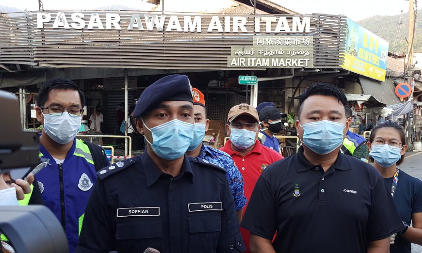 “Saya mohon agar jangan ada yang mencetuskan isu kononnya beberapa kawasan termasuk Pasar Awam Air Itam tidak mematuhi PKP. Selain itu, hentikan lah tuduhan mengatakan tiada pihak berkuasa memantau kawasan ini sedangkan setiap masa, polis yang dibantu agensi lain sentiasa ada di sini untuk memantau keadaan.