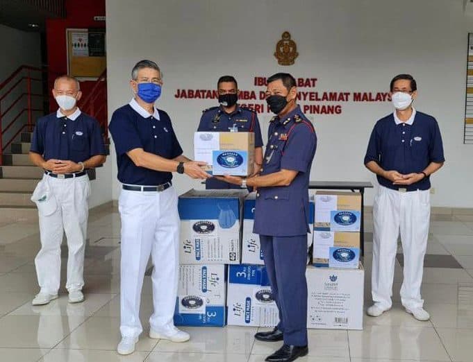 The society in Penang has contributed 10,000 face masks and 3,000 gloves to the Penang Fire and Rescue Department to protect the frontliners from the Covid-19 infection.