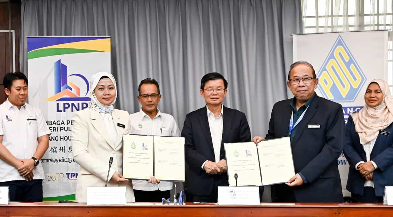BAYAN LEPAS – Lembaga Pembangunan Pulau Pinang (PDC) menandatangani Memorandum Perjanjian (MoA) bersama dengan Lembaga Perumahan Negeri Pulau Pinang (LPNPP) berkaitan pemilikan 59 parcel di Blok H, Mahsuri dekat Bayan Baru di sini.