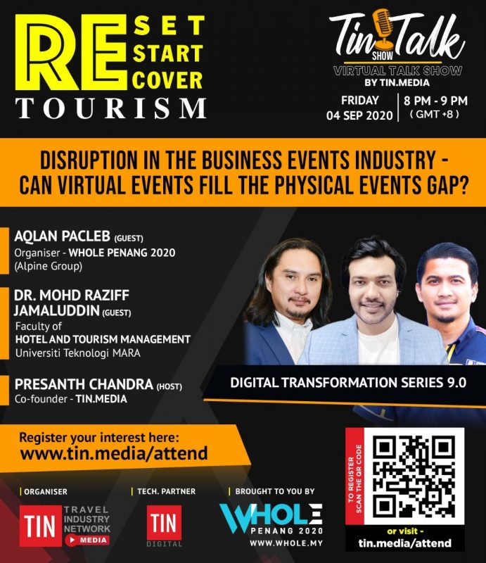 A virtual talk show entitled ‘Disruption in the Business Events Industry – Can Virtual Events Fill the Physical Events Gap?’ will be held from 8pm to 9pm tomorrow (Sept 4).