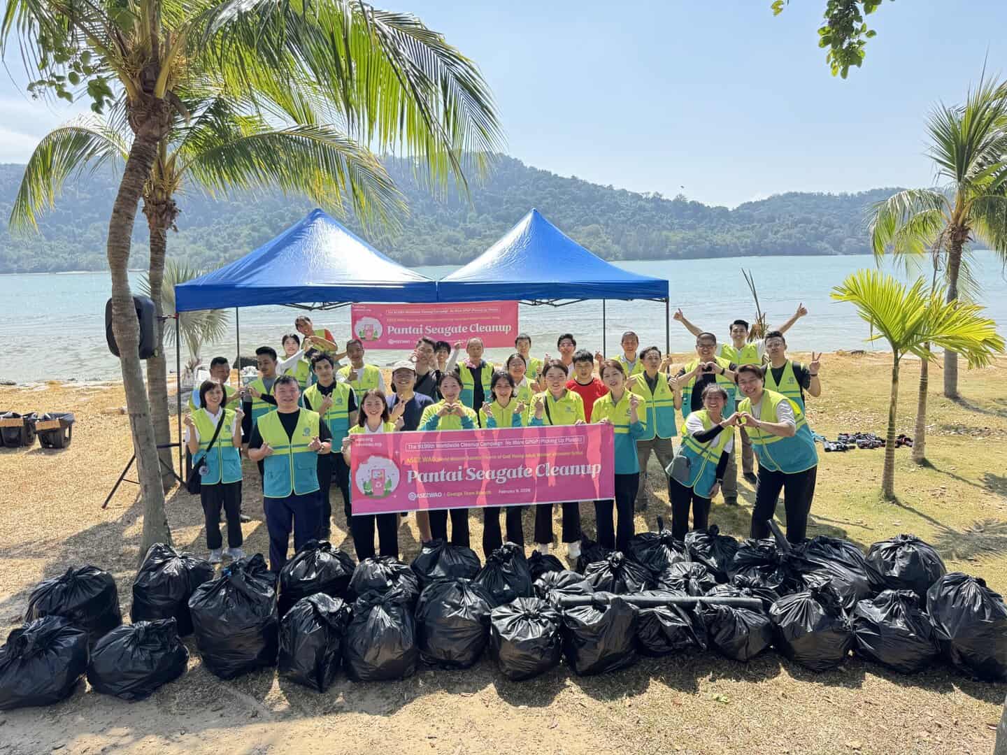 A TOTAL of 50 volunteers from ASEZ WAO (the Young Adult Worker Volunteer Group of the World Mission Society Church of God) together with members of the Village Community Management Council (MPKK) Jalan Tengah and other volunteers joined hands in a coastal clean-up programme at Pantai Seagate near Jambatan Harapan in Bayan Lepas yesterday (Feb 8).
